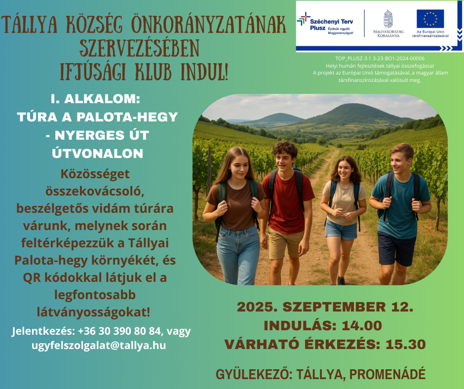 - Szent Vencel közös szüreti napok HUSK/2301/3.2/022/P2 - Tállyai Idősek Klubja felújítása TZFP_KIFA_2021/67 - VP6-7.2.1.1-20 Helyi termékértékesítést szolgáló piacok infrastrukturális fejlesztése - TOP Plusz-3.1.3-23. -BO1-2024-00006 Helyi Humán fejlesztés tállyai összefogással - EFOP -3.9.2. Adatbázis Golop - EFOP -3.9.2. Adatbázis Tállya - EFOP -3.9.2. Képzési tájékoztató - EFOP -3.9.2. Tájékoztatás a közszolgáltatásban dolgozók körében megvalósított képzésekről - Magyar Falu Program MFP-ÖTIFB/2024. https://tallya.hu/galeria/magyar-falu-program - EFOP-3.9.2-16-00021 - EFOP-1.5.3-16-2017-00114 - EFOP-3.9.2-16-2017-00021 - Bursa Hungarica 2024. B kiírás - Bursa Hungarica 2024. A kiírás - A helyi identitás és társadalmi kohézió erősítése Abaújszántó központtal - Bursa Hungarica 2023. A kiírás - Bursa Hungarica 2023. B kiírás - Beltéri útfelújítas - Árop szervezetfejlesztési pályázat - Árop Ügyfél elégedettségi kérdőív - Árop következő eredménye - Árop eredménye - Óvoda Épület felújítása - Árop projekt irányitási_strukturája - Tanulhatóbb tanulásért - Tállya Község belterületi vízrendezése II. ütem - Tállya Község belterületi vízrendezése II. ütem - A Tokaj borvidék világörökségi helyszíneinek fejlesztéseTop_Plusz-3.1-3-23-BO1-2024-00006