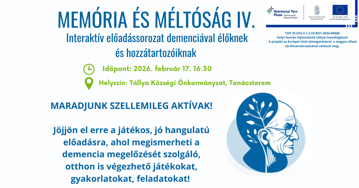 - Tállyai Idősek Klubja felújítása TZFP_KIFA_2021/67 - VP6-7.2.1.1-20 Helyi termékértékesítést szolgáló piacok infrastrukturális fejlesztése - EFOP -3.9.2. Adatbázis Golop - EFOP -3.9.2. Adatbázis Tállya - EFOP -3.9.2. Képzési tájékoztató - EFOP -3.9.2. Tájékoztatás a közszolgáltatásban dolgozók körében megvalósított képzésekről - Magyar Falu Program MFP-ÖTIFB/2024. https://tallya.hu/galeria/magyar-falu-program - EFOP-3.9.2-16-00021 - EFOP-1.5.3-16-2017-00114 - EFOP-3.9.2-16-2017-00021TOP_PLUSZ-3.1.3-23-BO1-2024-00006 - Nőnap Tállya közösségével - Modern színházi előadás II. - Memória és méltóság IV. interaktív előadás - Mindenki karácsonya 2025. adatvédelmi tájékoztató - Memória & méltóság III. - Meséljük a mesét! - interaktív mesepedagógiai program - Kerékpározz biztonságosan! - Kerékpározz biztonságosan Adatvédelmi tájékoztató TOP_PLUSZ-3.1.3-23-BO1-2024-00006 - Rendszeres Ifjúsági Klub - Rendszeres Ifjúsági Klub Adatvédelmi tájékoztató TOP_PLUSZ-3.1.3-23-BO1-2024-00006 - Modern színházi előadás I. Adatvédelmi tájékoztató TOP_PLUSZ-3.1.3-23-BO1-2024-00006 - Modern színházi előadás I. - Új kenyér ünnepe TOP_PLUSZ-3.1.3-23-BO1-2024-00006 - Új kenyér Ünnepe adatvédelmi tájékoztató TOP_PLUSZ-3.1.3-23-BO1-2024-00006 - Memória és Méltóság előadás adatvédelmi tájékoztató TOP_PLUSZ-3.1.3-23-BO1-2024-00006 Hely - Memória&Méltóság Interaktív előadás - Bibliatábor TOP_PLUSZ-3.1.3-23-BO1-2024-00006 - Bibliatábor adatvédelmi tájékoztató TOP_PLUSZ-3.1.3-23-BO1-2024-00006 - Helytörténeti tábor Adatvédelmi tájékoztató Top_Plusz-3.1.3-23-BO1-2024-00006 - Helytörténeti tábor Top_Plusz-3.1.3-23-BO1-2024-00006 - Kis kezek, nagy dolgok- kézműves alkotótábor - Kis kezek, nagy dolgok- kézműves alkotótábor - Adatvédelmi tájékoztató TOP_PLUSZ-3.1.3-23- - Memória&Méltóság Interaktív előadás - Memória és Méltóság előadás adatvédelmi tájékoztató TOP_PLUSZ-3.1.3-23-BO1-2024-00006 Hely - TOP_PLUSZ-3.1.3-23-BO1-2024-00006 Helyi Humán fejlesztés tállyai összefogással